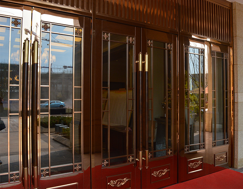 不锈钢装饰单元门因材质不同分为:不锈钢防盗门、铁门、钢木结构、不锈钢、铝合金和铜质。不锈钢防盗门是用不锈钢材料制作的具有优越防盗性能的进户门。不锈钢防盗门坚固耐用,优越的安全性能,满足不同场合安全需求,特别是机密仓库的首选“铜墙铁壁”。推广不锈钢材质的门窗是2013年之前门窗行业的发展趋势;由于不锈钢材质自身的价格因素造成其价格定位也较高。